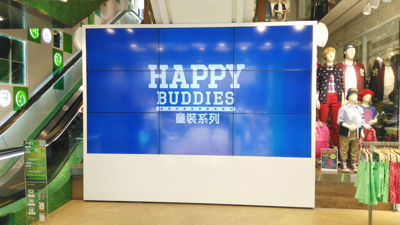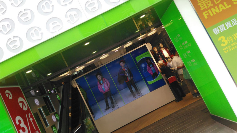 香港旺角新世紀(jì)廣場(chǎng)服裝店46寸超窄邊3X3大屏幕