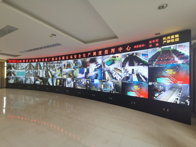 山西華瀛天影集廣煤業(yè)LG55寸3.5mm3*12落地弧形機柜案例展示