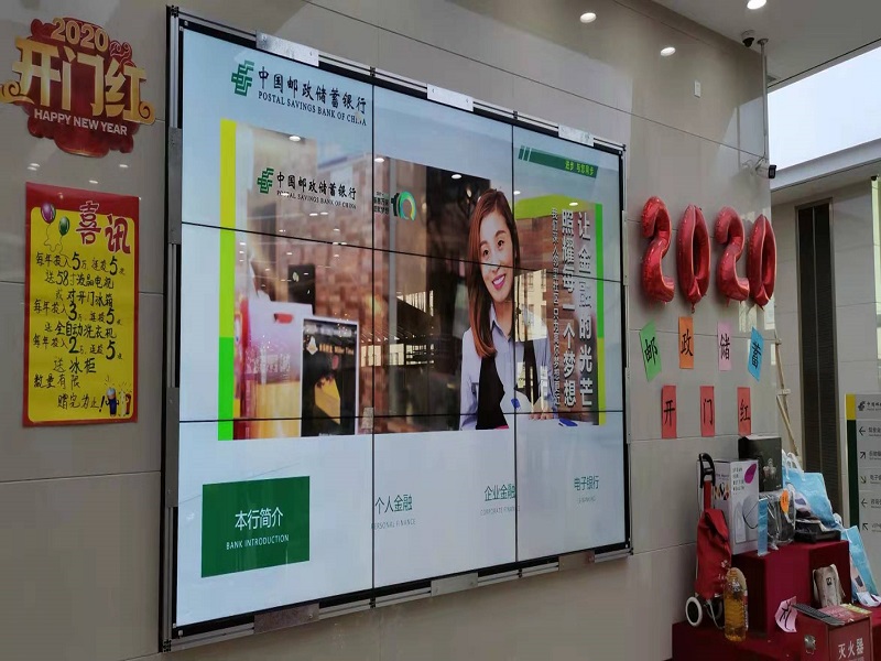 十點(diǎn)紅外觸摸55寸3X3拼接屏助力黑龍江南崗區(qū)郵政儲(chǔ)蓄銀行