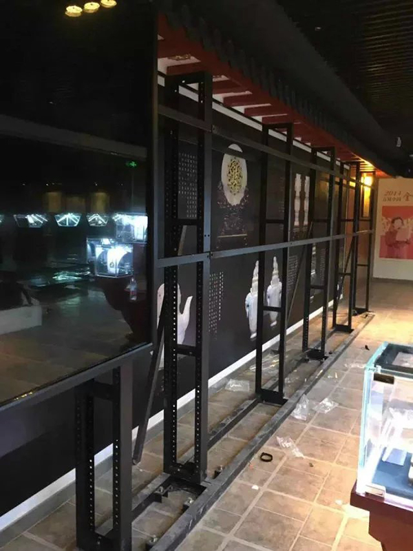 3.所有內(nèi)部設施安裝完畢后開始安裝液晶拼接屏,由下往上安裝。